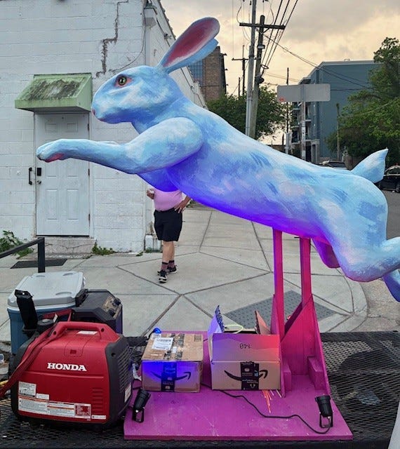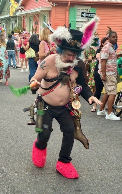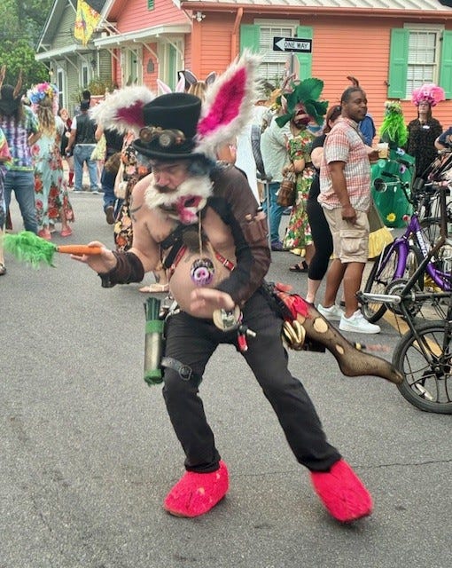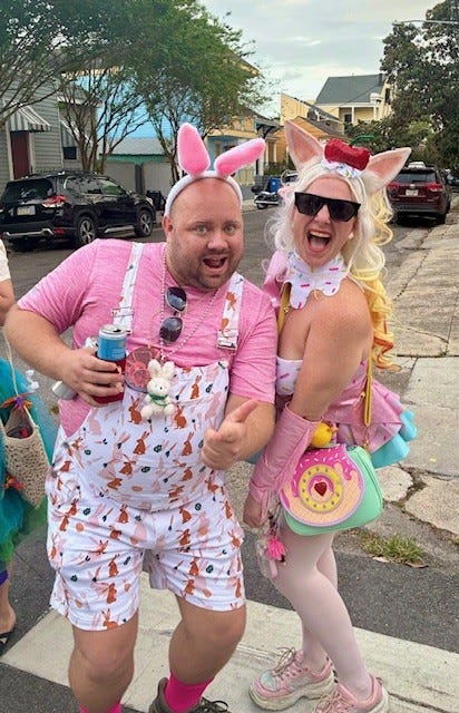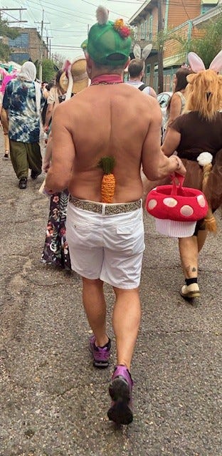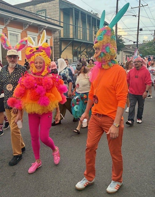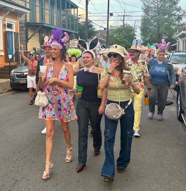 All manner of bunnies gathered in the Marigny on Saturday evening for a street party and march through the neighborhood. The event is a benefit for the ASPCA- NOLA.